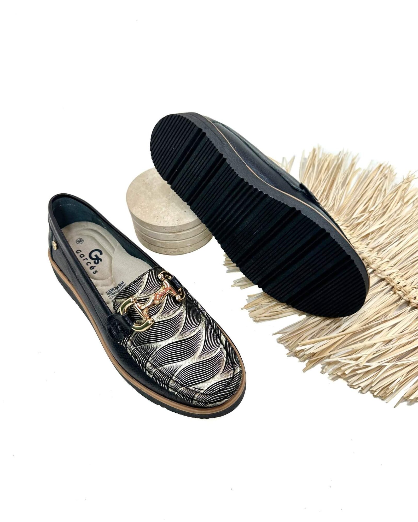 Mocasin Danna Negro Oro Ondas