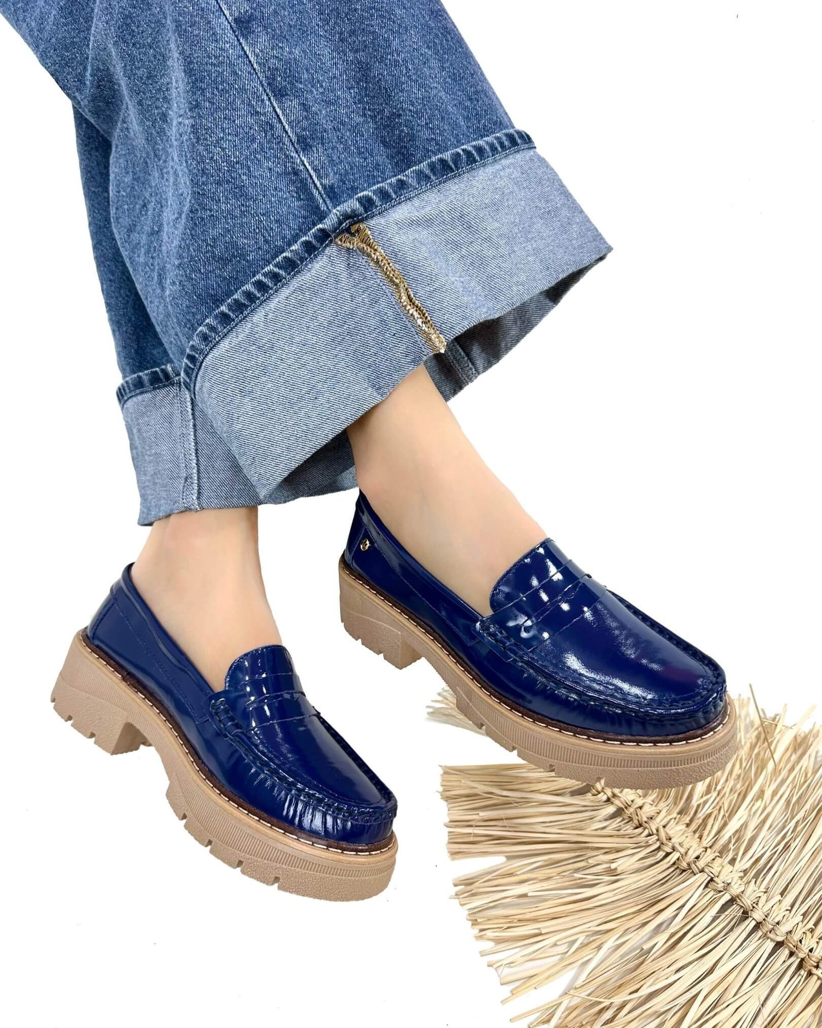 Mocasin Retro Charol Antifaz Azul